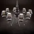 Metal frame finished with satin white or black varnish. PVC foil shades coated with white or black fabric. Velvet chain cover.