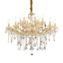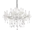 Metal frame with decorative glass elements. Pendants composed of cut crystal octagons and final drops. Available versions: clear glass with golden or silvery metal.