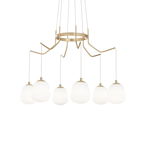 Metal frame with satin brass finish. White overlay acid-etched blown glass diffuser.