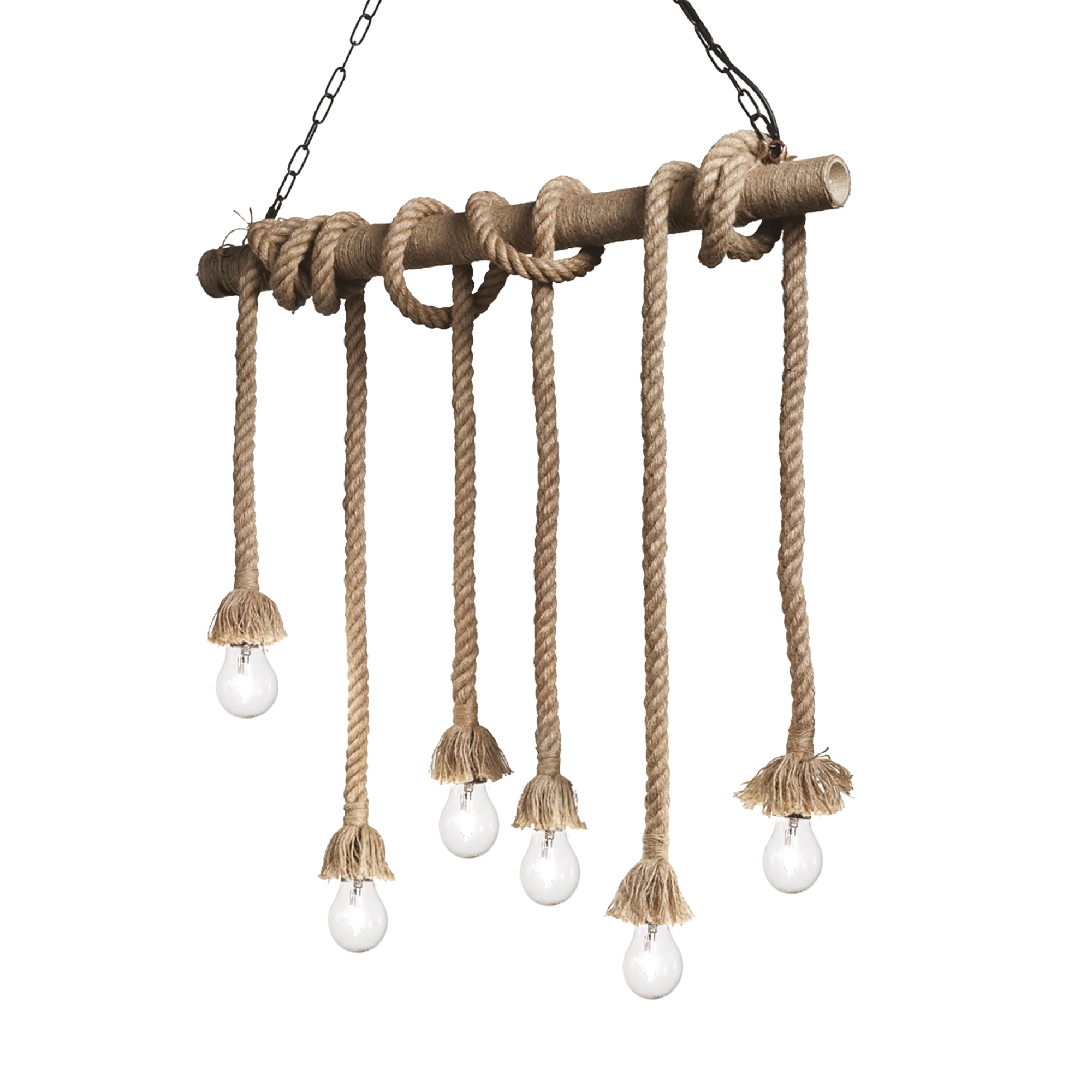 Montatura in metallo verniciato. Cavi elettrici e diffusori rivestiti in corda di canapa naturale.
