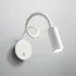 Corpo luce in metallo con braccio flessibile orientabile rivestito in gomma. Rifinito in bianco o in nero opaco oppure in grigio con dettagli in cromo.