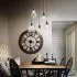 Montatura in metallo rifinito in vernice nera opaca con applicazione in legno naturale. Diffusori in vetro soffiato trasparente. Cavi in tessuto nero.